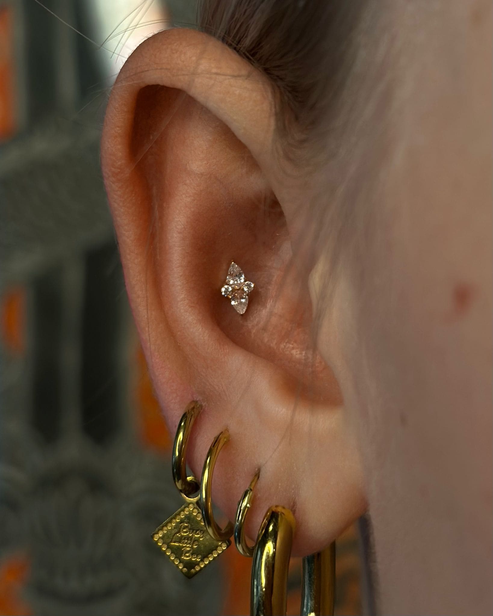 Ontdek inspiratie voor oorpiercings zoals lobe, upper lobe, helix, forward helix, flat, conch, tragus, anti-tragus, rook, daith, snug en industrial. Van subtiel tot een curated ear.