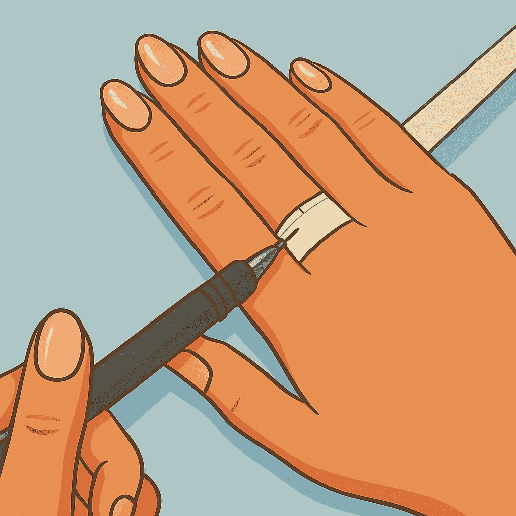Gebruik een touwtje of een stukje papier om het gewenste gebied / de basis van je vinger te omwikkelen.