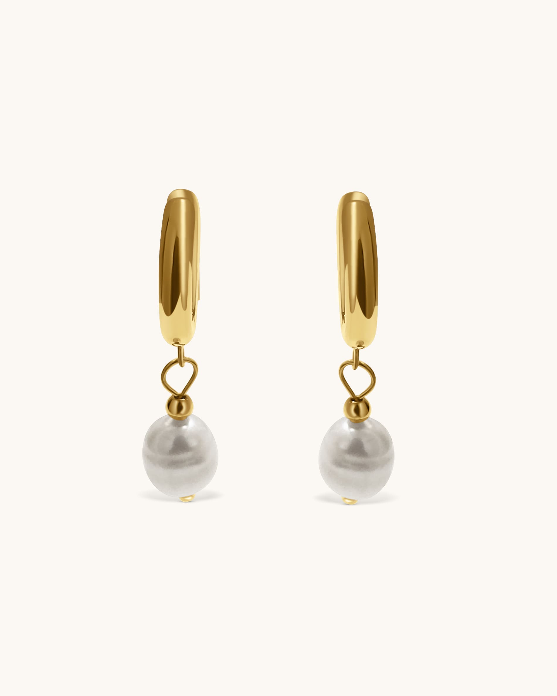 Een elegante hangende pareloorbel met een glanzende parel. Perfect om een vleugje verfijning en tijdloze schoonheid aan elke outfit toe te voegen.