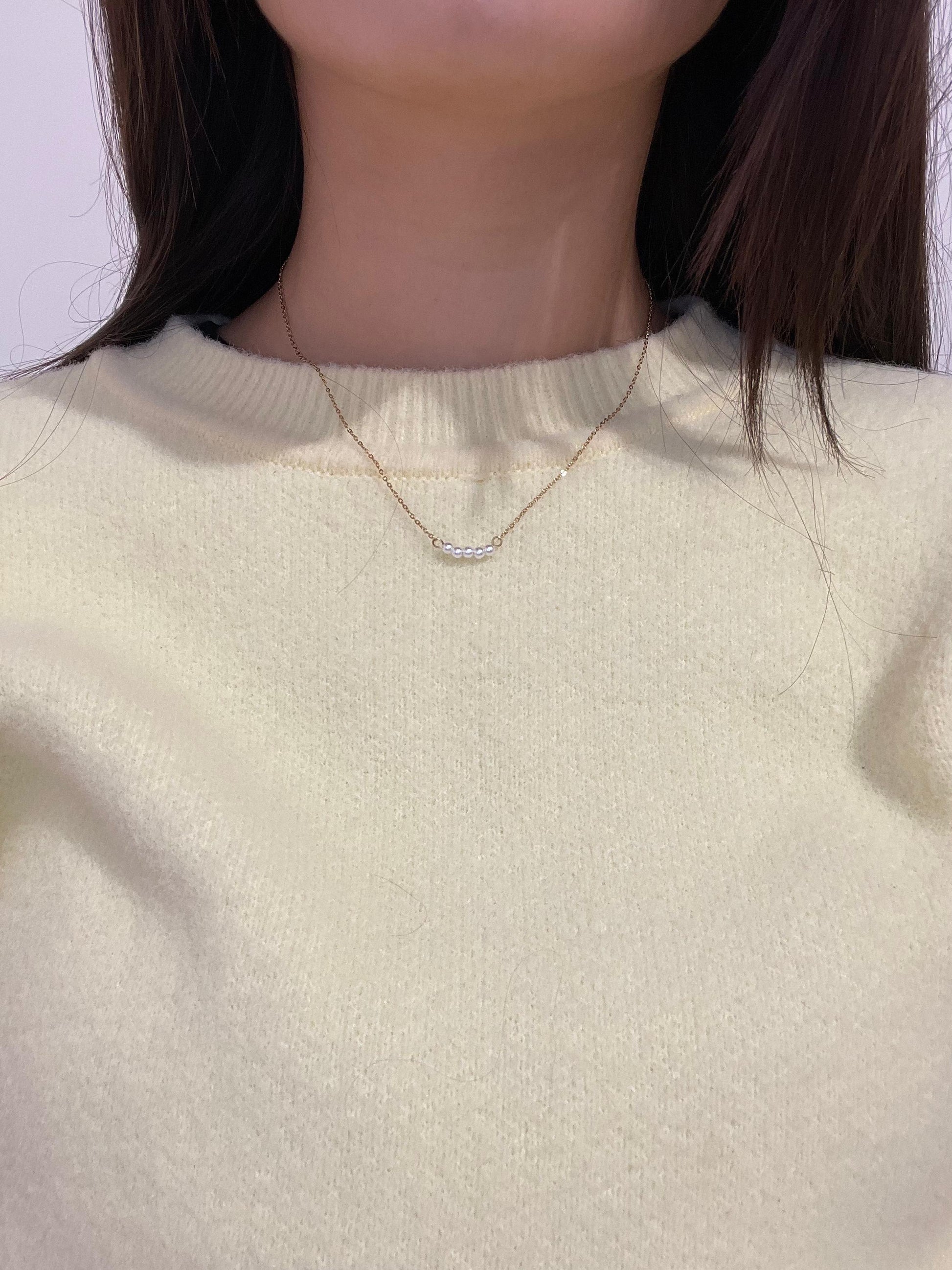 Een verfijnde ketting met kleine parels in het midden, die subtiele elegantie toevoegt aan elke outfit. Perfect voor een chique, tijdloze uitstraling!