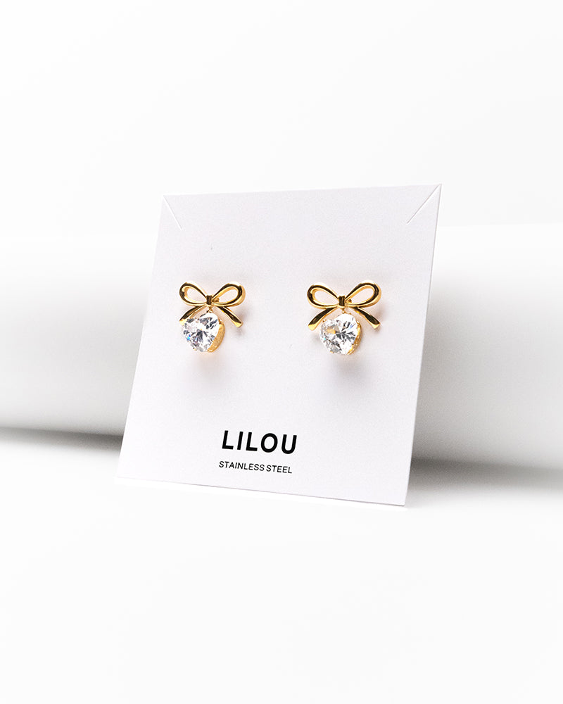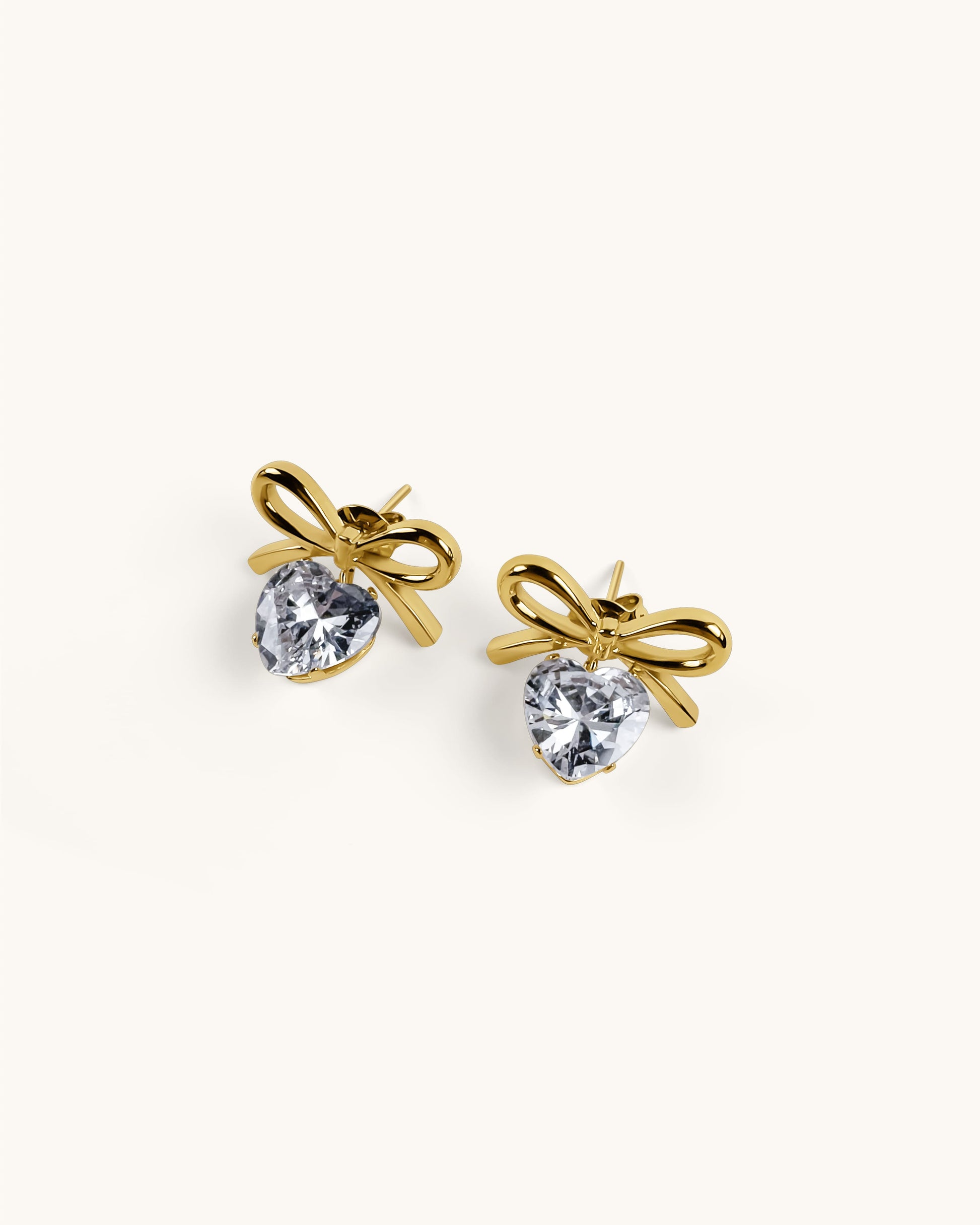 Oorbellen in de vorm van een strik met een grote kristal, perfect om elke look charme te geven.