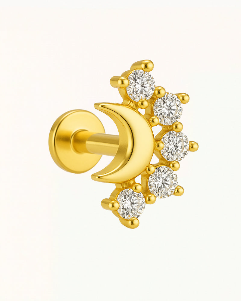 Titanium Piercing met Maan en Kristallen - Kate