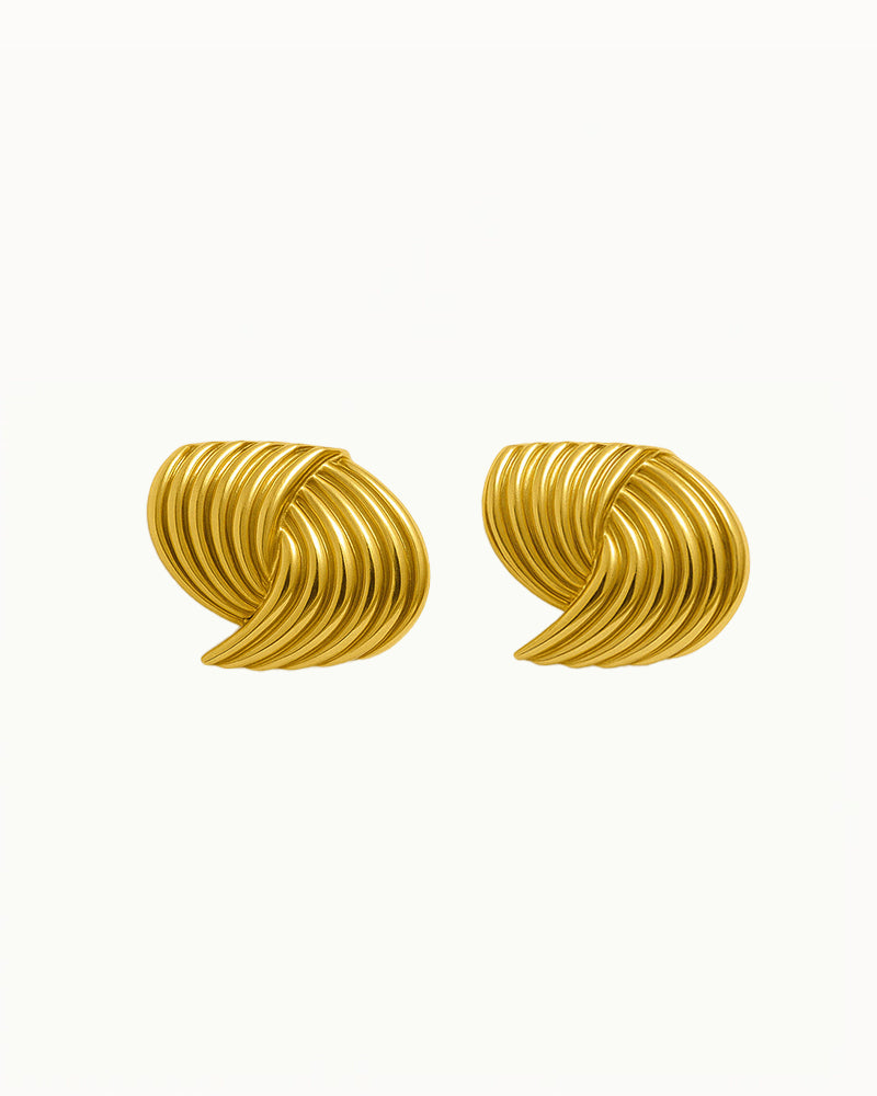 Geef je look een flinke dosis power met deze oorknopjes met ribbelstructuur. Het opvallende, gevouwen design doet denken aan vintage couture, maar is helemaal van nu. Dankzij de glanzende afwerking en golvende lijnen stralen deze oorbellen zowel luxe als artistic flair uit.